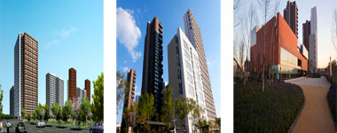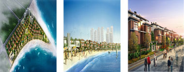 位于塘沽的中心城區(qū)和海洋高新技術(shù)開發(fā)區(qū)接合部。容積率3.1,綠化率35%。占地97997平方米,建筑345933平方米。3331套、302135平方米住宅;28套、6874平方米別墅